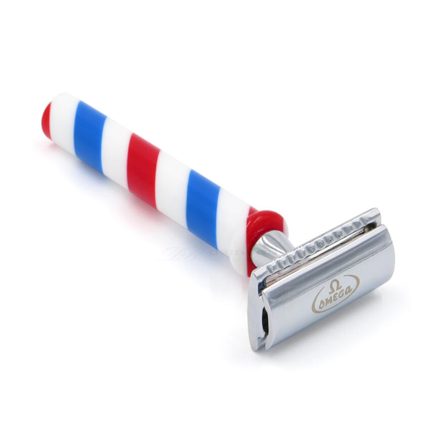 Omega D5735 Double Edge Safety Razor With Barber Pole Resin Handle